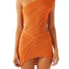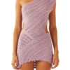 Women Knitted Mini Dress Sleeveless One Shoulder