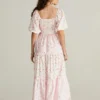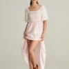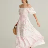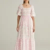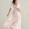 Women Long Dress Floral Print Square Neck Short Sleeve Dress Summer Fashion Casual Dress