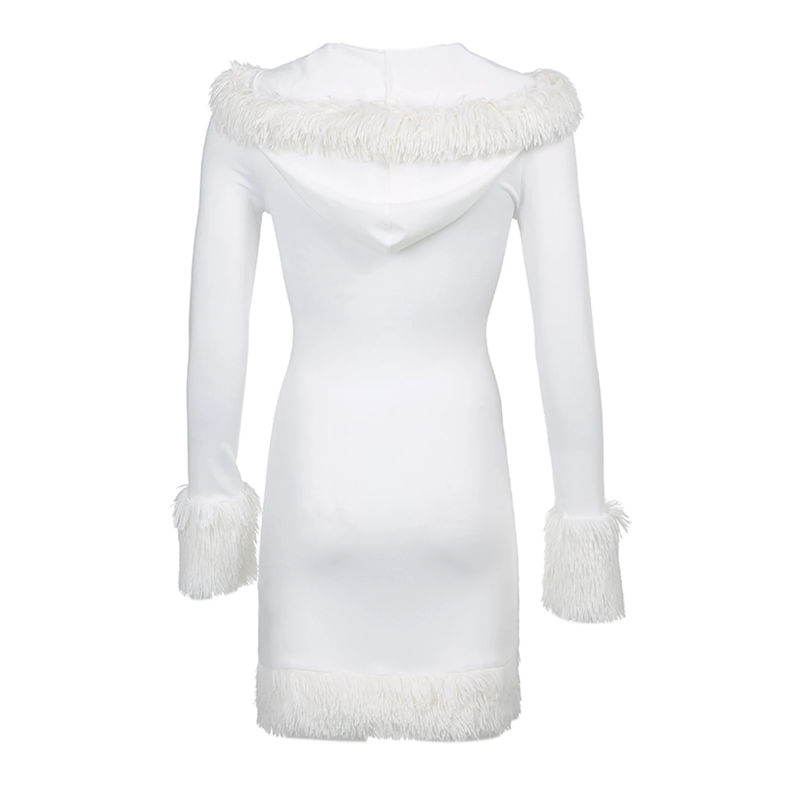 Women’s Dress, Plush Hem Splicing Frenulum V-neck Hooded Skirt