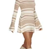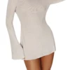 Women’s Fall Mini Dress Long Sleeve Open Back Contrast/Solid Color Knit Dress Casual Sweater Dress