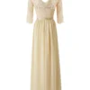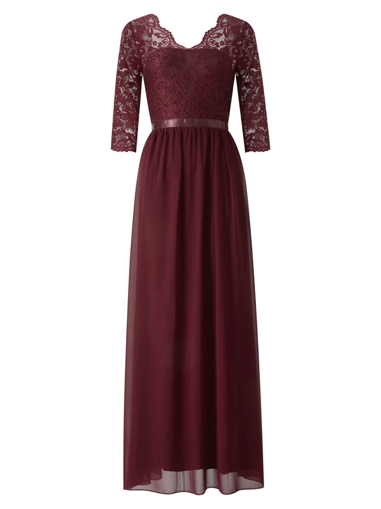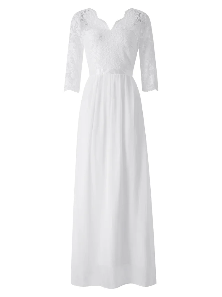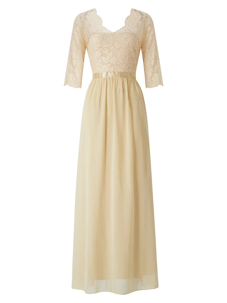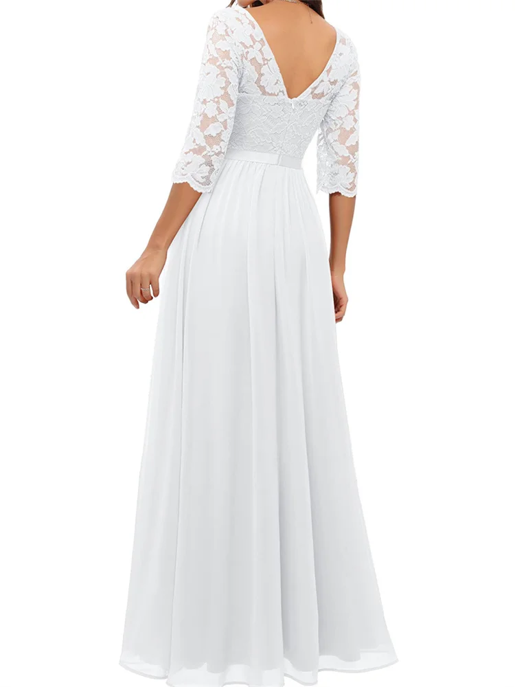 Women’s Long Dress Patchwork Lace V-neck Mid-Sleeve Backless Dress