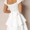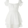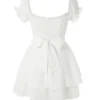 Women’s Mini A-Line Dress Solid Color Ruffled Sleeves Square Neck Layered Hem Dress