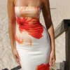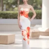 Women’s Sleeveless Long Dress Flower Print Strapless
