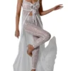 Womens Summer Long Beach Dress Sleeveless Backless Sheer Lace Split Bikini Cover Up